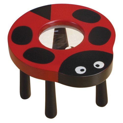Kraftig lupp byggd av stdigt trä med inlagd glaslins. Förstorar 5x. Sex stadiga ben håller den väl på plats för att hanteras även av de allra minsta.